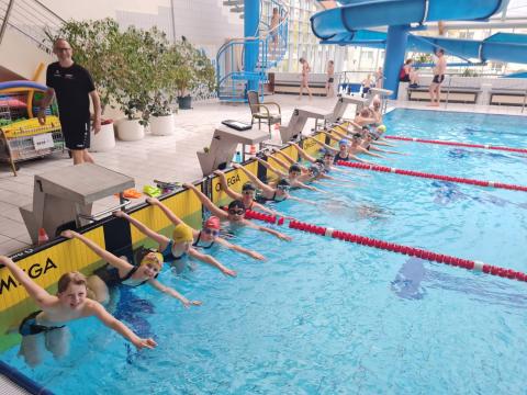TG 1, 2 und 3 begann den heutigen Trainingstag in der Sporthalle und erwärmten sich mit einer Einheit Fitnesstanz an den sich nahtlos ein Parcourstraining zur Stärkung der Beinmuskulatur anschloss. In dieser Zeit zogen die anderen Gruppen ihre Bahnen im Bad. Hier waren die Schwerpunkte Delphin- und Brustschwimmen sowie Kraul bei den kleinsten Schwimmern.