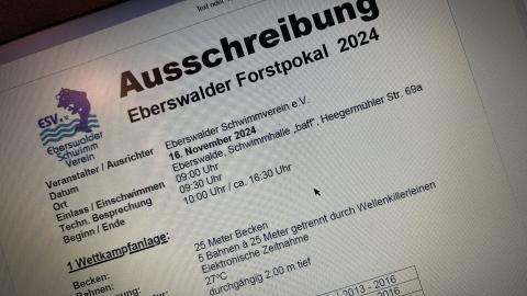 Der Schwimmwettkampf "Forstpokal" des Eberswalder Schwimmverein e.V. hat eine lange Tradition. Besonders alle Kinder und Jugendlichen unseres Vereins sind eingeladen an unserem eigenen Wettbewerb teilzunehmen. Am 16. November 2024 von 10 bis 16:30 Uhr wird unsere Schwimmhalle „baff“ zum bestens vorbereiteten Wettkampfbecken.