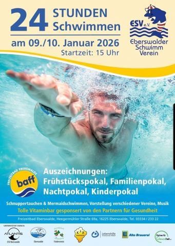 Das Jahr 2026 beginnt mit einer Tradition - dem 24 Stundenschwimmen im baff am 09. zum 10. Januar von 15 bis 15 Uhr. Es werden ganz dringend noch Helfer für das Zählen der Bahnen gesucht, besonders auch in den Nachtstunden! Meldet euch bitte, auch wenn ihr nur kleine Zeiträume unterstützen könnt. Die Durchführung der Veranstaltung ist nur durch die Hilfe vieler möglich!